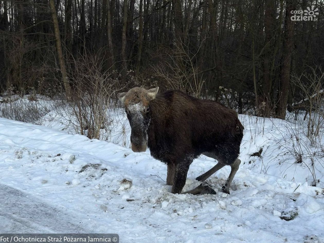 Strażacy pomogli uwięzionemu łosiowi w Jamnicy